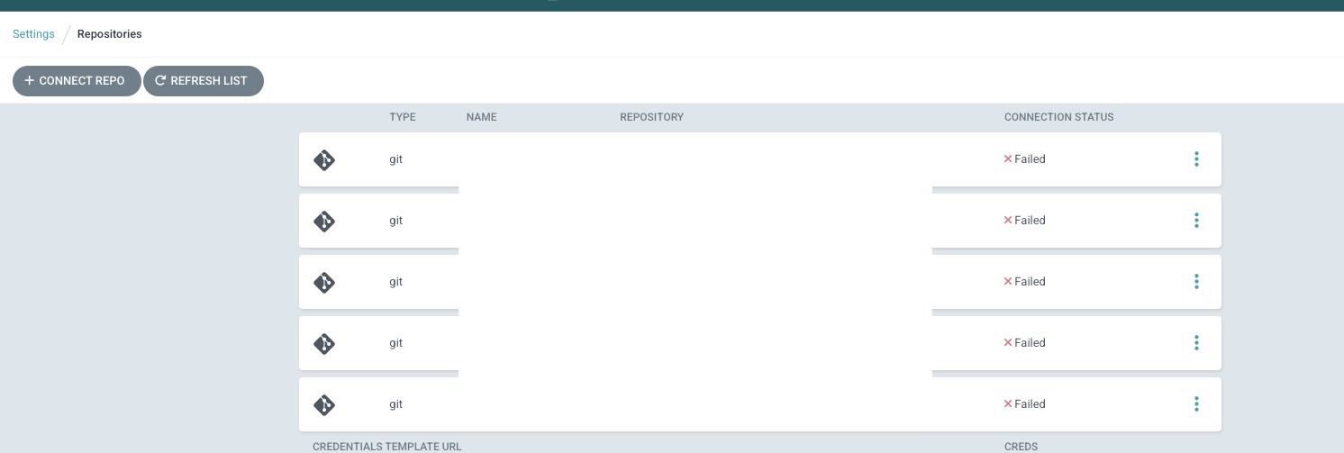 argocd 상에서 모든 레포지토리와의 연결리 Failed가 된 상태였기 때문에 배포에 문제가 생기기 전에 해결을 했어야 했다.🥲